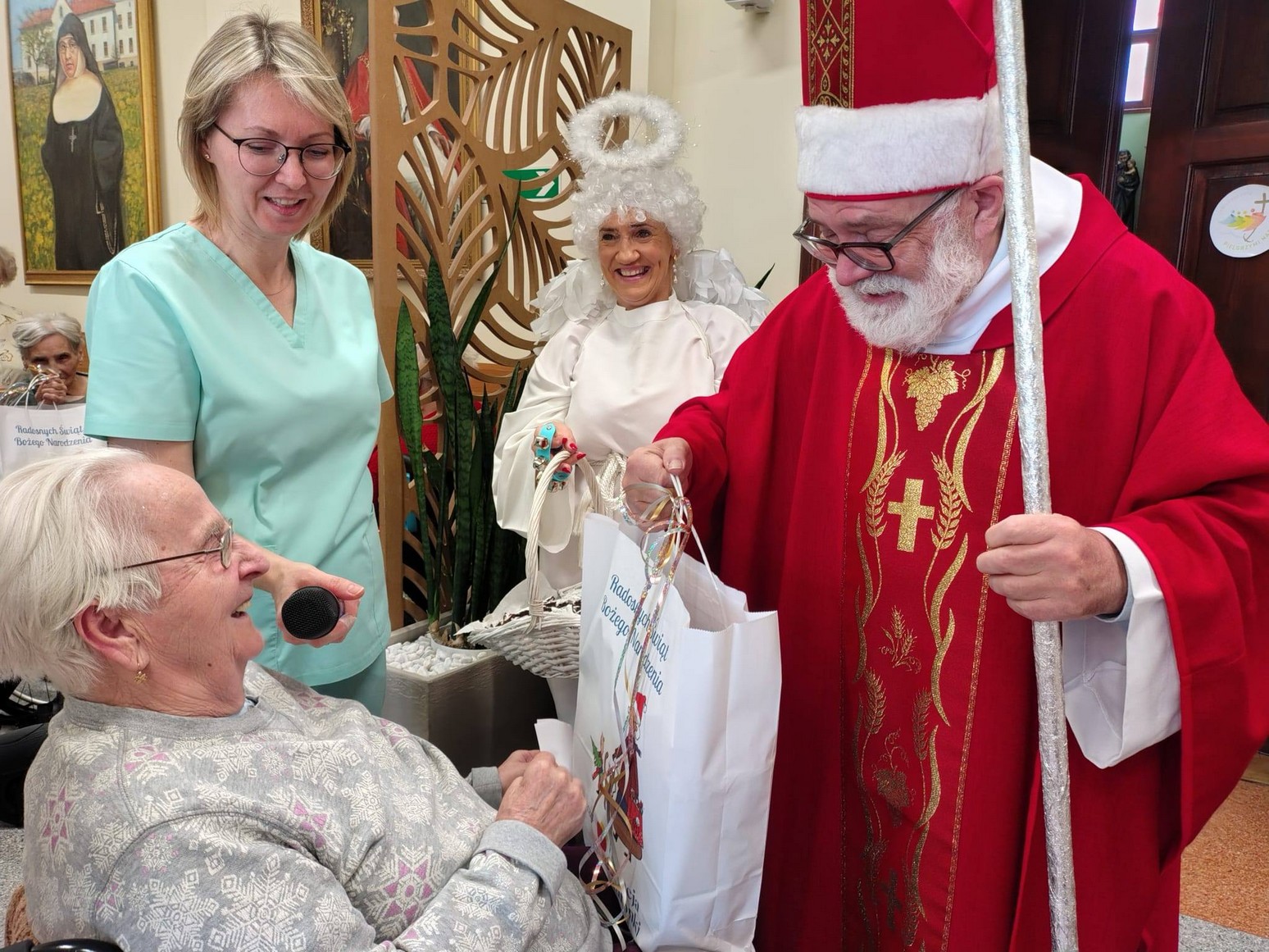 Dla niektórych przewidziany był mały sprawdzian przygotowany przez św. Mikołaja - trzeba było zaśpiewać piosenkę. Wszyscy egzamin zdali, bo w naszym domu śpiew i muzyka goszczą codziennie. Św. Mikołaj odwiedził także chorych, którzy leżą w łóżkach, co sprawiło im wielką radość.