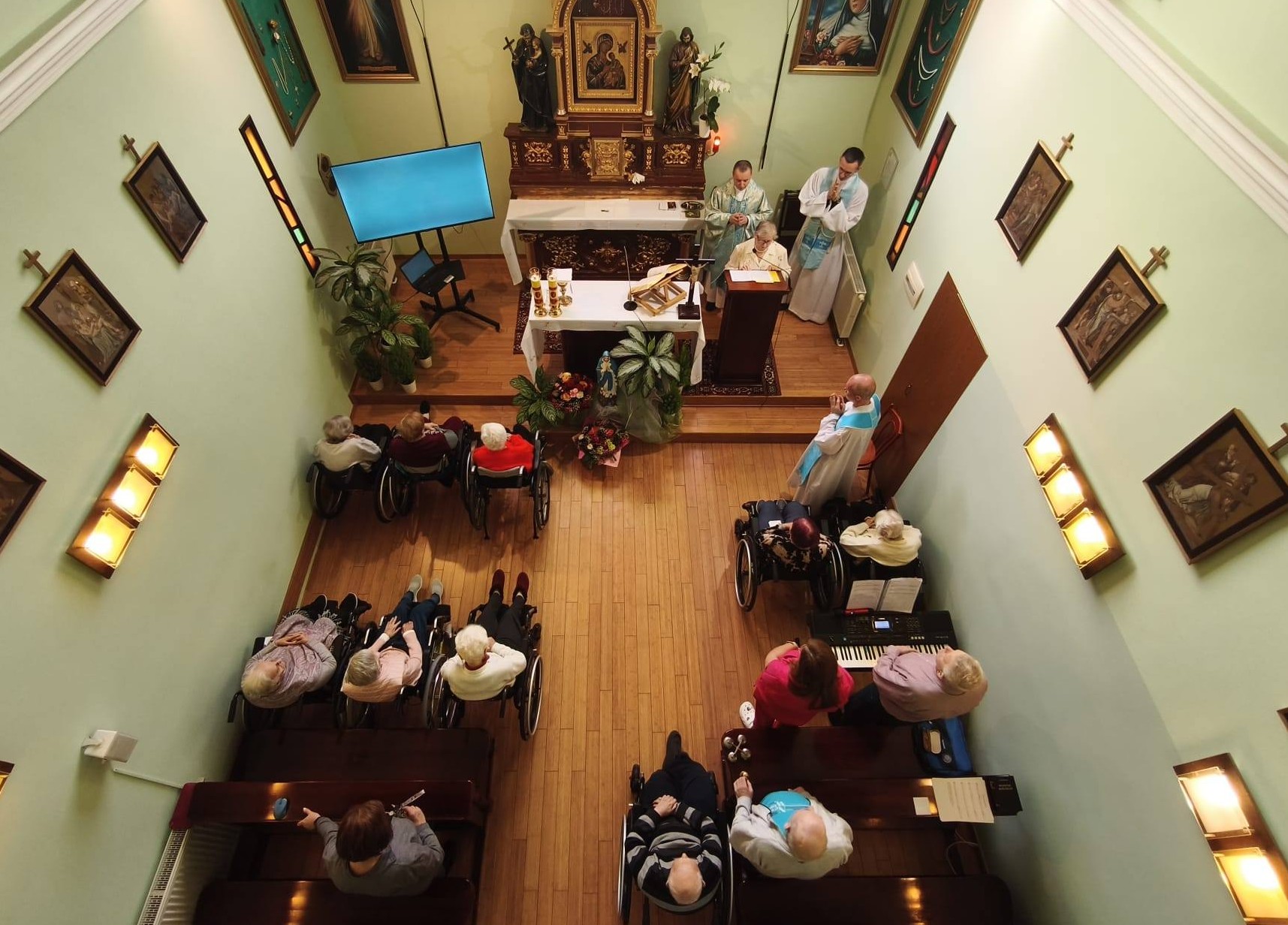 Po południu o godz. 13:15 odmówiliśmy różaniec modląc się za wszystkich chorych i cierpiących oraz za wszystkich, którzy im służą. Nabożeństwo to było muzycznie animowane przez pracownice naszego domu.