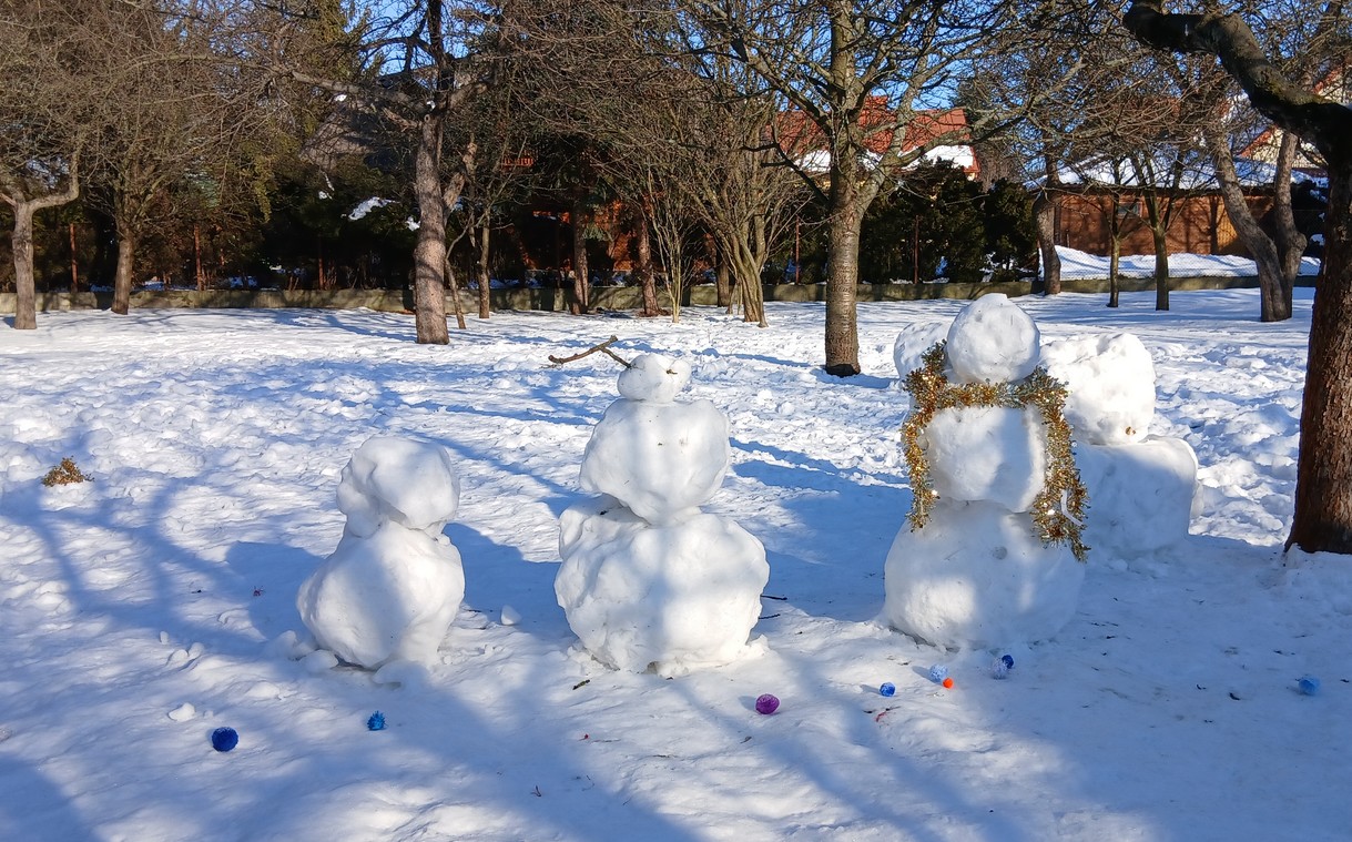 W piątek 16 stycznia nasz wystrojony białym puchem ogród odwiedziły dzieci wraz z opiekunkami z przedszkola Bajka w Tarnowie. Ogród napełnił się śmiechem przedszkolaków bawiących się w śniegu i wkrótce pojawiły się bałwanki ulepione przez nie. Niektóre bałwanki, ze względu na zimno, zostały zaopatrzone przez dzieci w szaliki. Mieszkający w naszym domu emeryci z radością spoglądali z okien na zabawy dzieci. Pamiątką wizyty przedszkolaków są stojące w ogrodzie bałwanki. Na razie żaden z bałwanków się nie przeziębił.